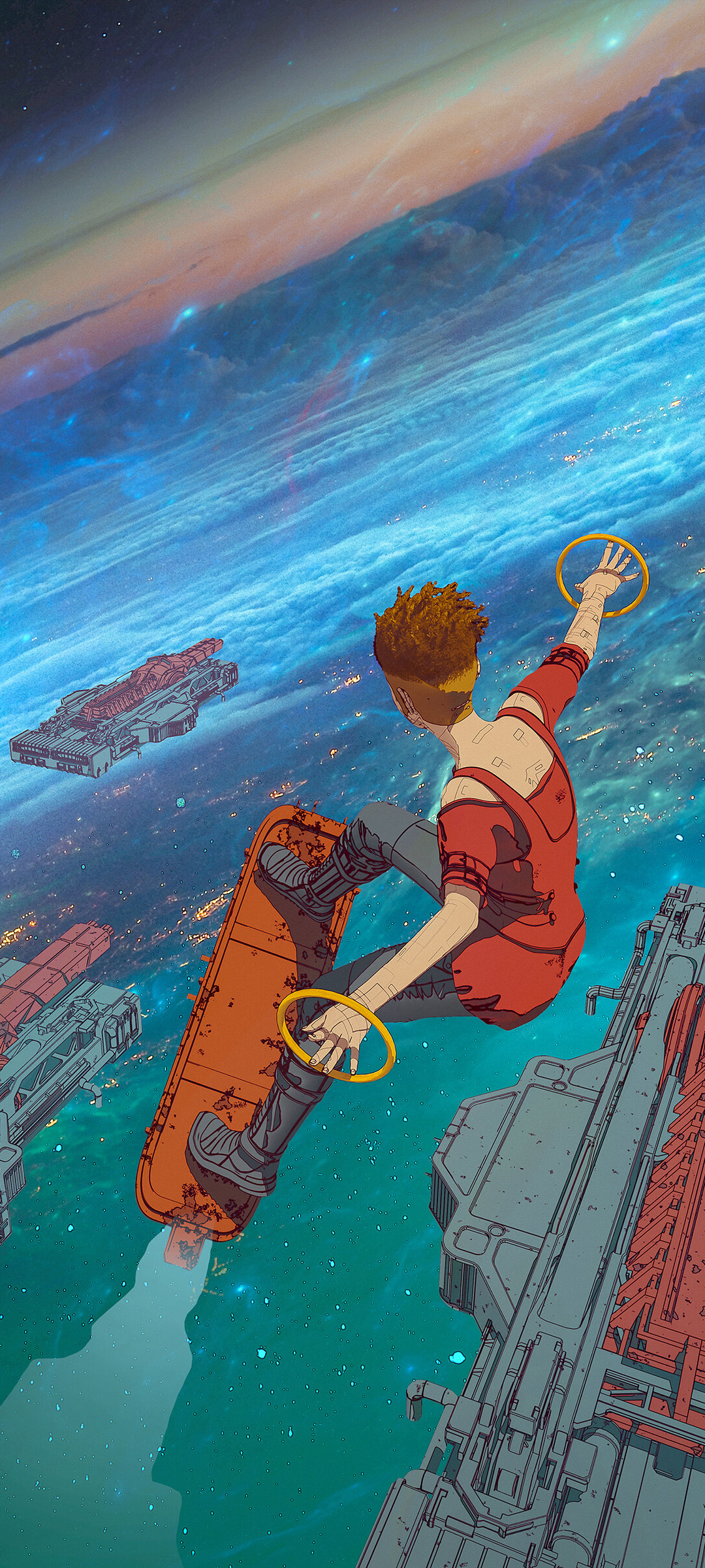 未来科幻 幻想 人在太空上滑板 运动 全屏手机壁纸