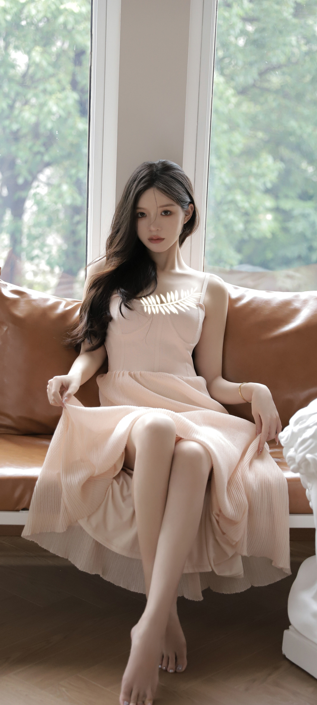 穿长裙子的美女 美腿 好看身材 沙发 美女手机壁纸图片