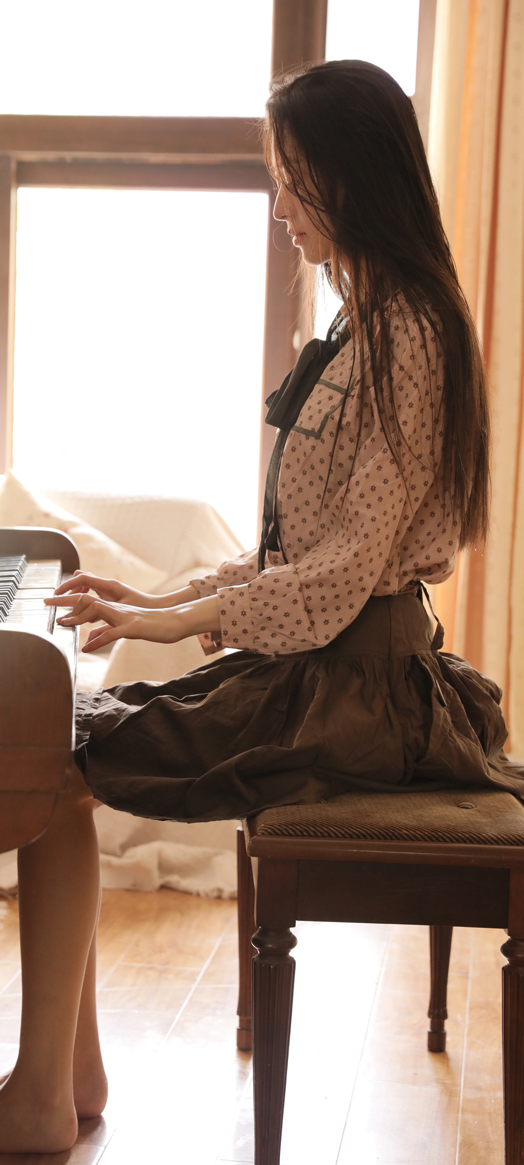 坐地板文艺美女唯美裙子手机壁纸免费下载