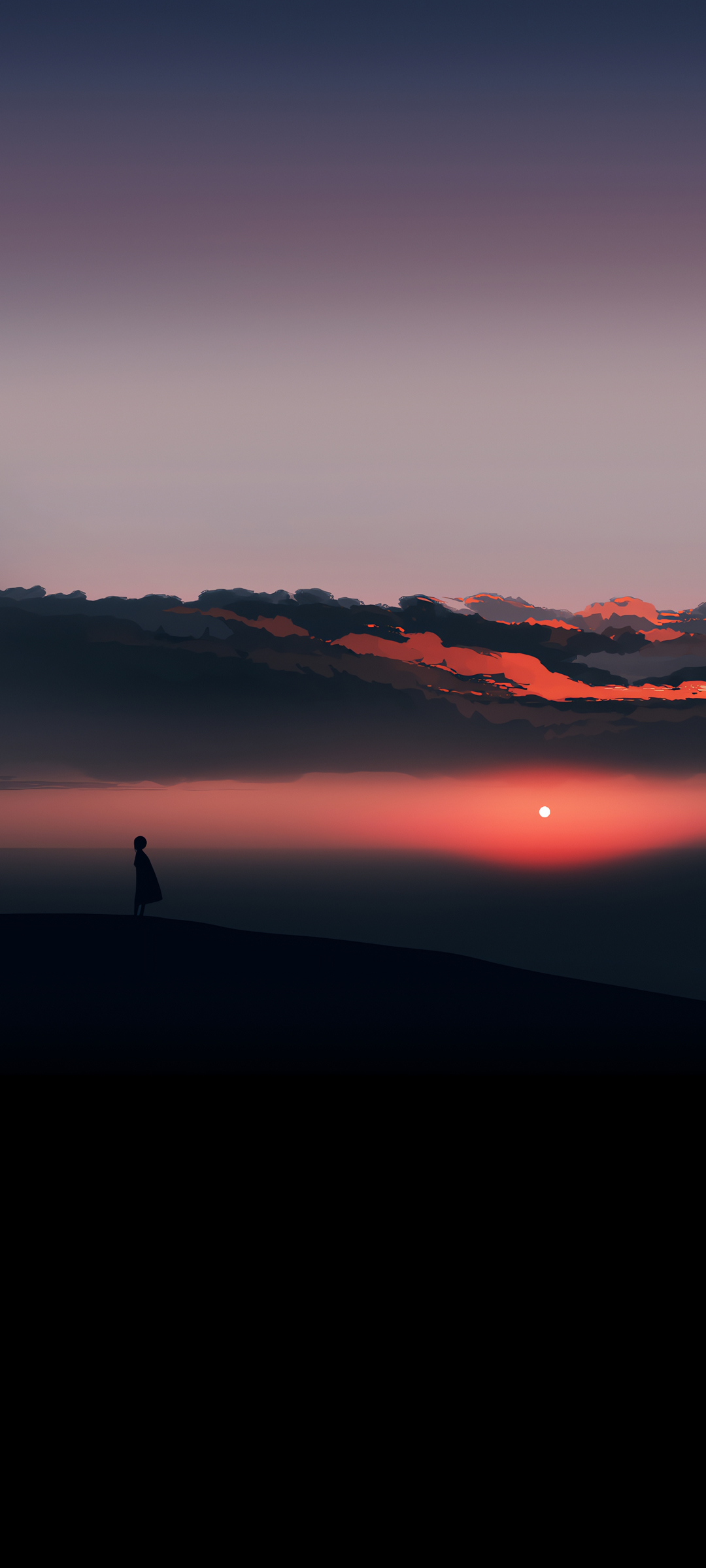 天空暗云下小女孩唯美全屏动漫手机壁纸免费下载