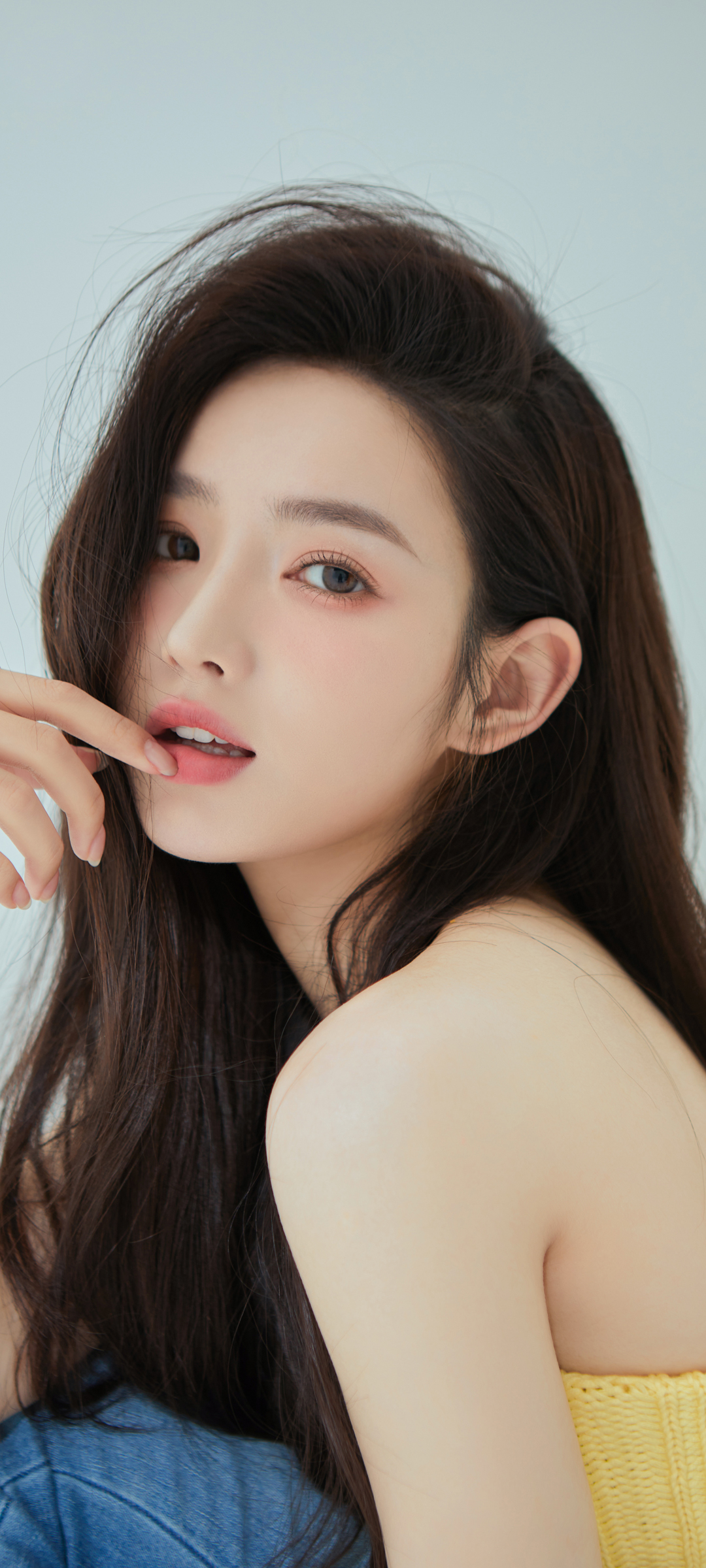 鞠婧祎后仰闭眼唯美手机壁纸免费下载