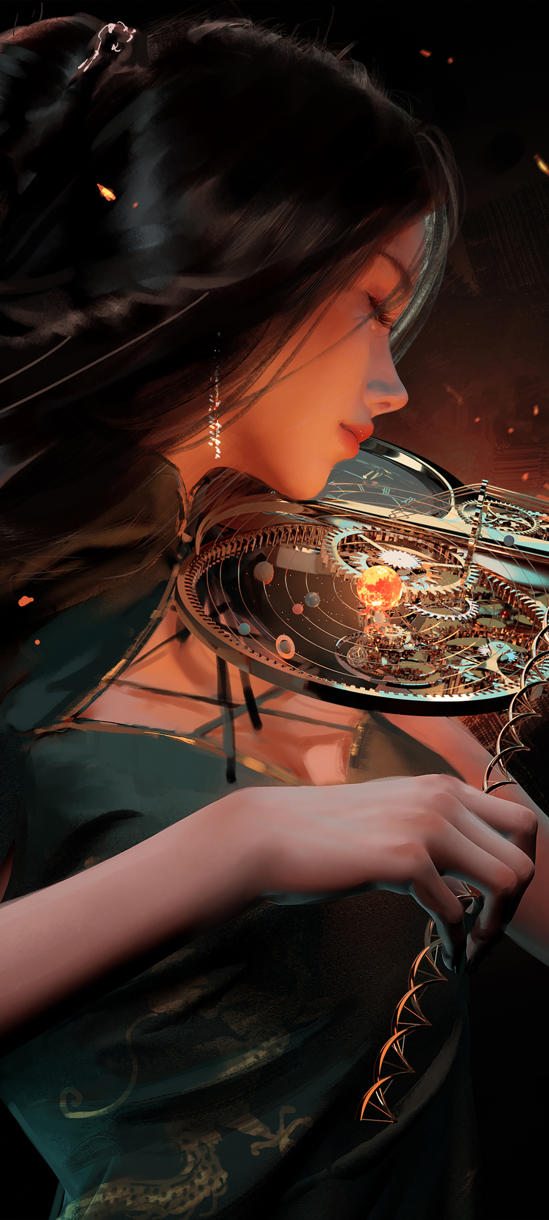 美女旗袍 小提琴 机械 齿轮 鬼刀手机壁纸
