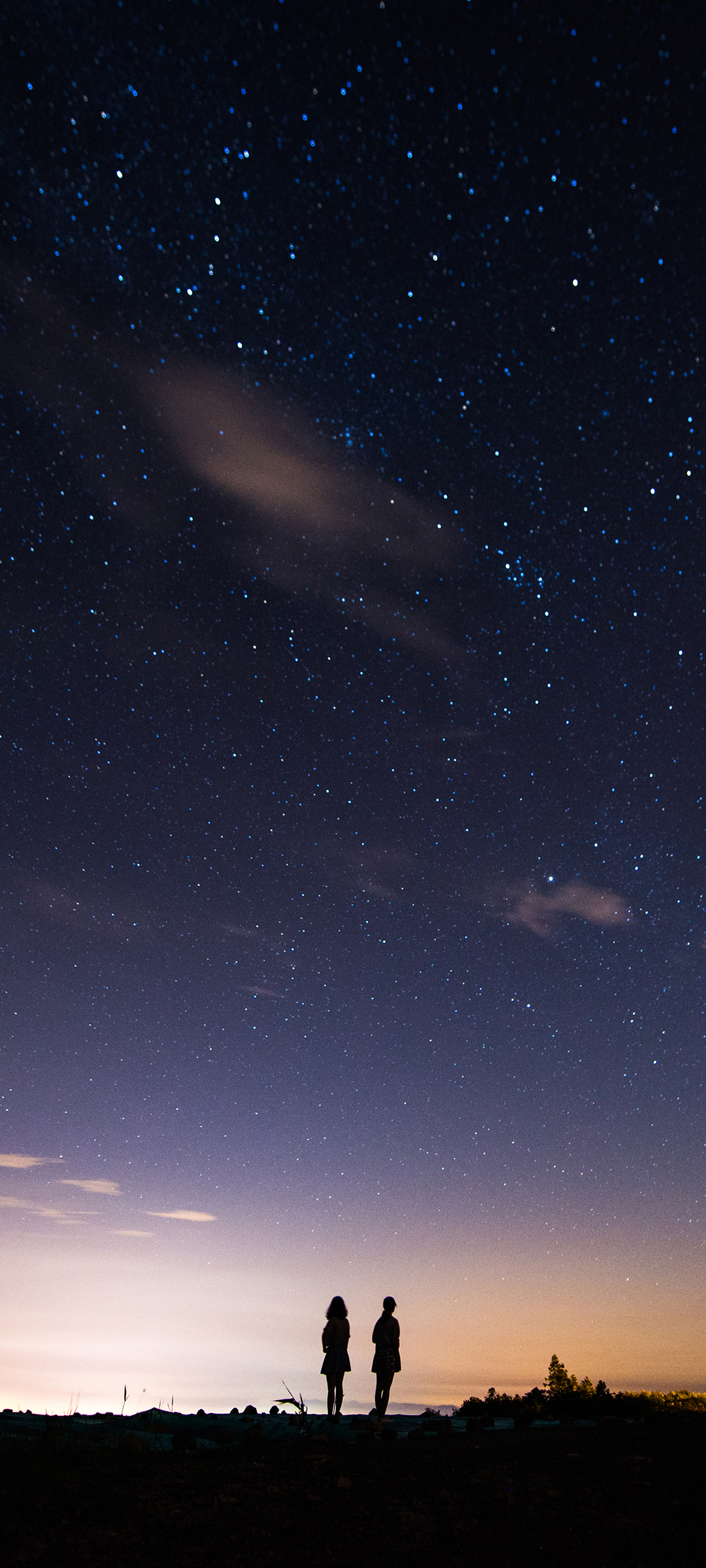 晚上星空下两个女孩唯美风景免费手机壁纸下载