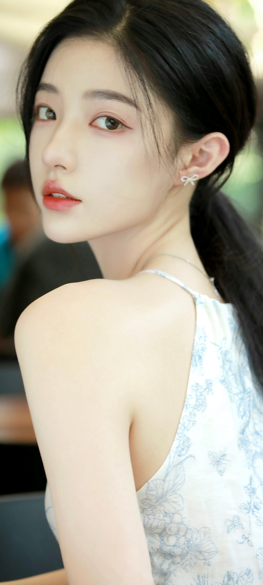 潘白雪回头露肩膀美女手机壁纸免费下载