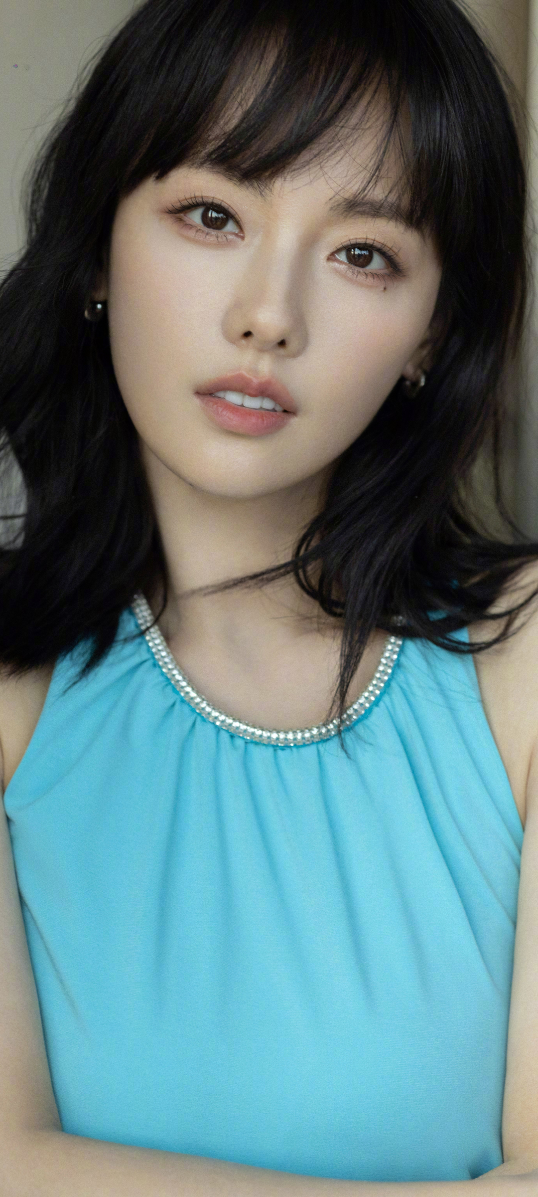 张嘉倪蓝色裙子高清美女手机壁纸免费下载