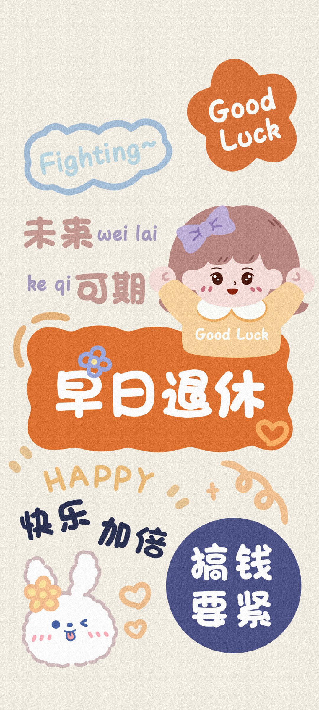 女生专用 可爱 早日退休 搞钱要紧 手机 桌面 壁纸