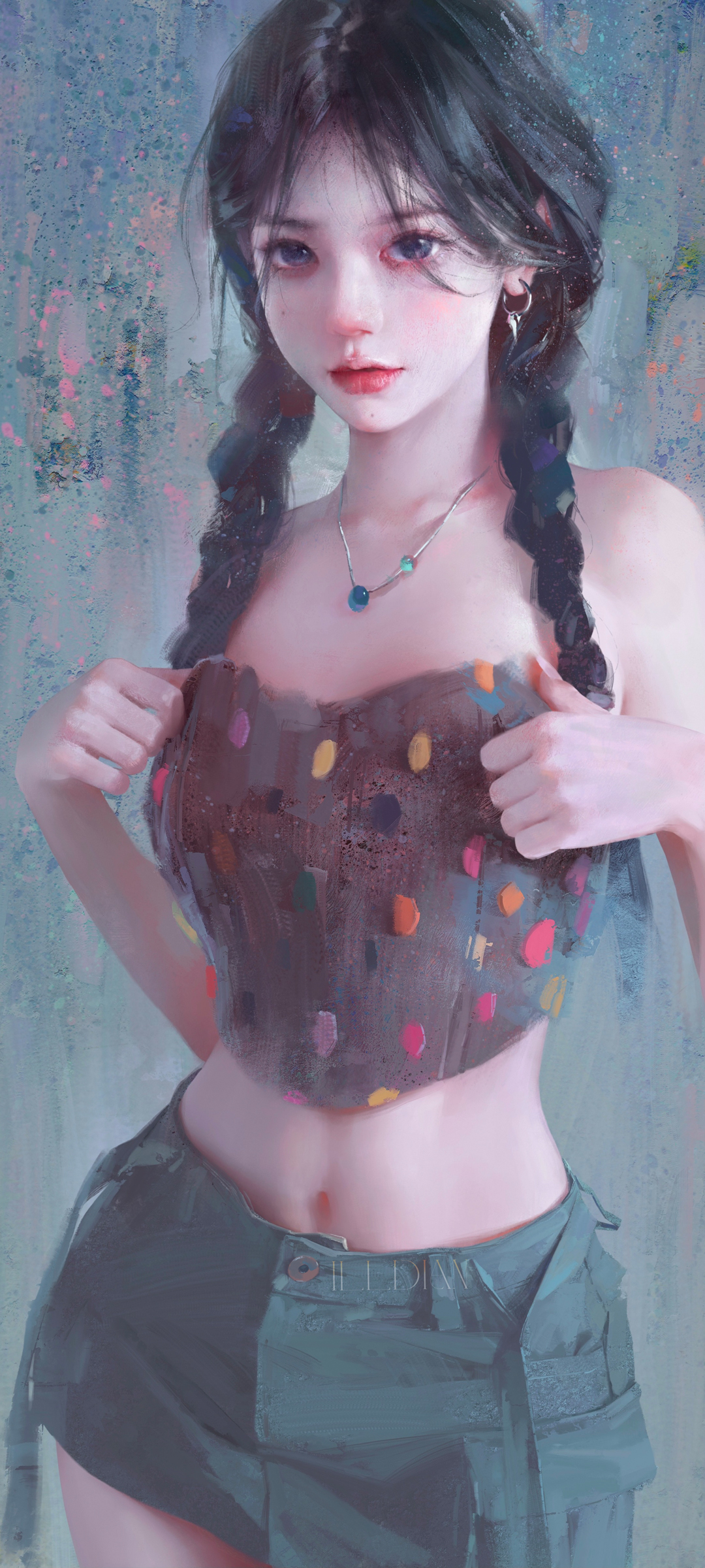 绿色眼睛美女穿黑色裙子厚涂动漫全屏手机壁纸免费下载