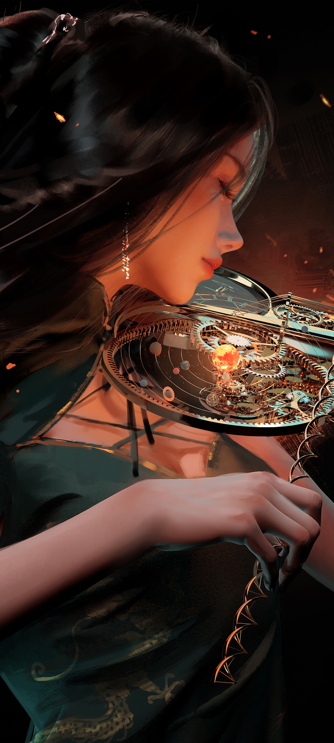 居家 听音乐 长发女孩 wlop鬼刀手机壁纸