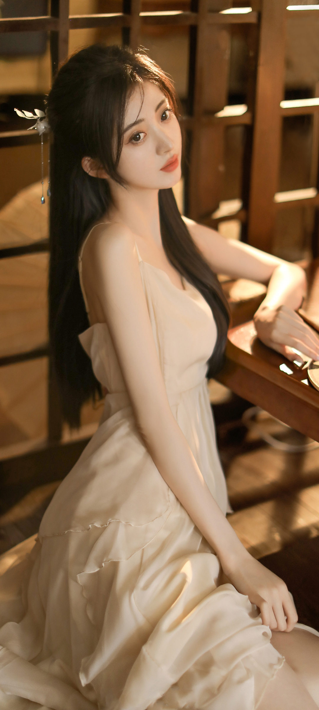 长发白色裙子养眼美女曹婉瑾手机壁纸