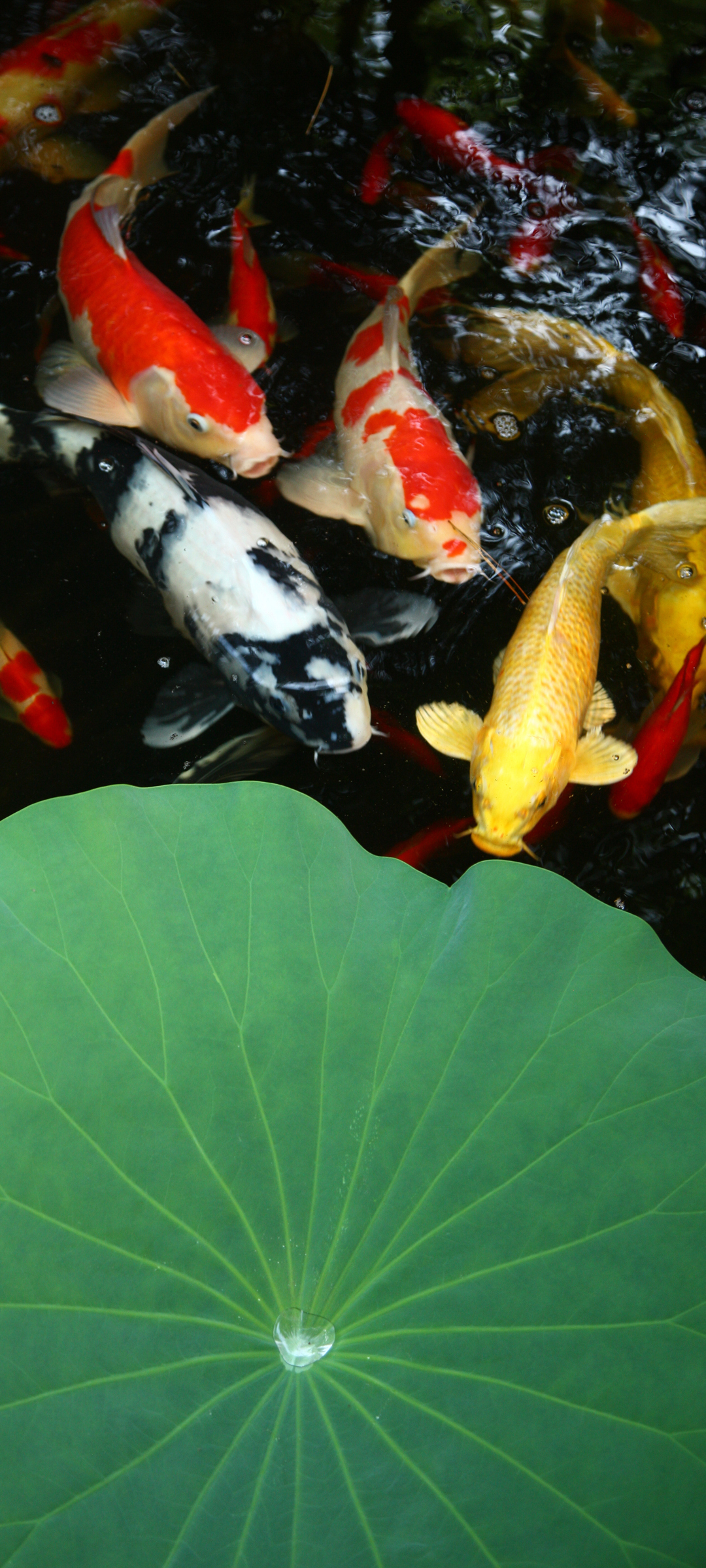 荷塘 鱼 荷叶 露珠 手机壁纸