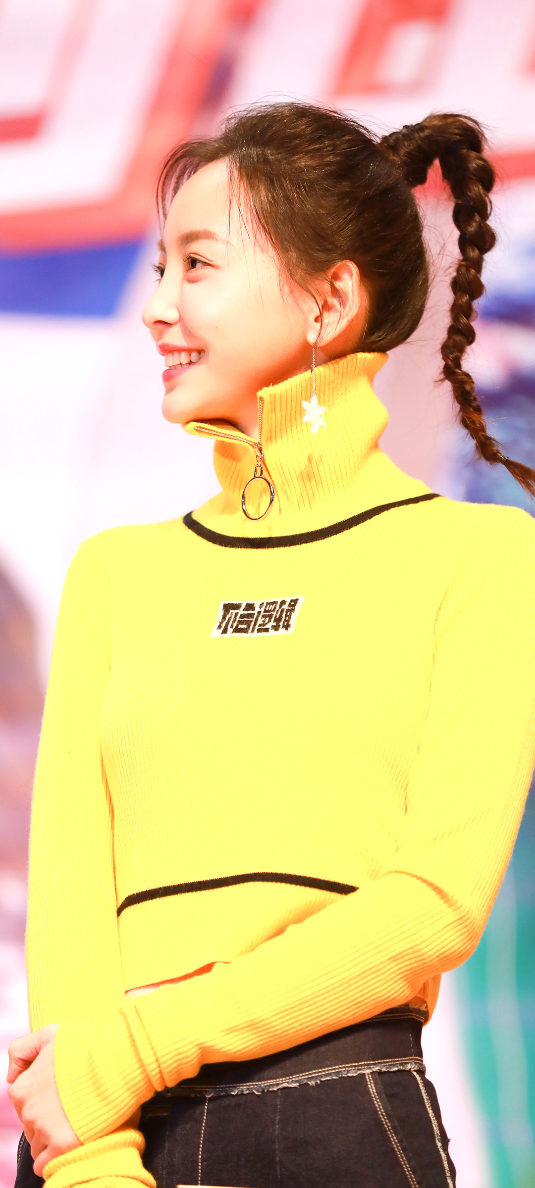 可爱鞠婧祎粉色裙子橙色背景墙手机壁纸免费下载