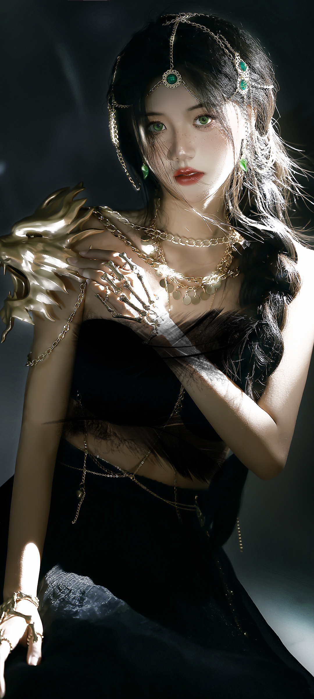 cos 鬼刀 绿色眼睛 美女 手机高清壁纸