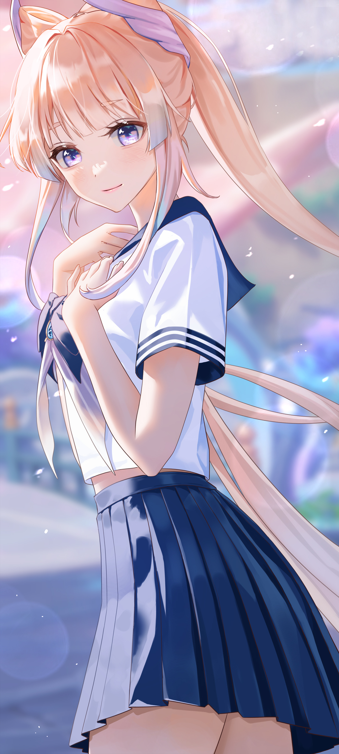 紫色长头发动漫美女百褶裙黑丝手机壁纸免费下载
