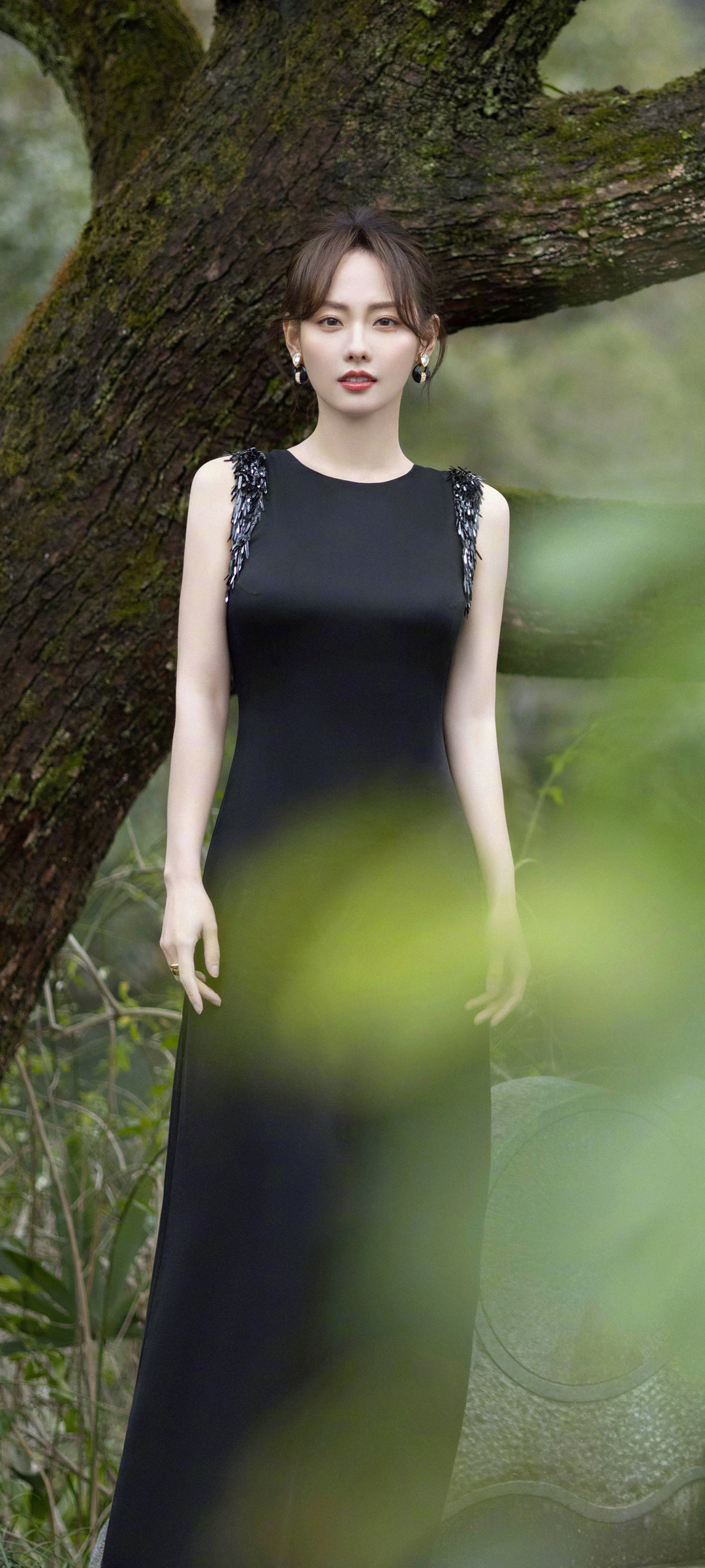 张嘉倪黑色长裙子高清全屏手机壁纸免费下载