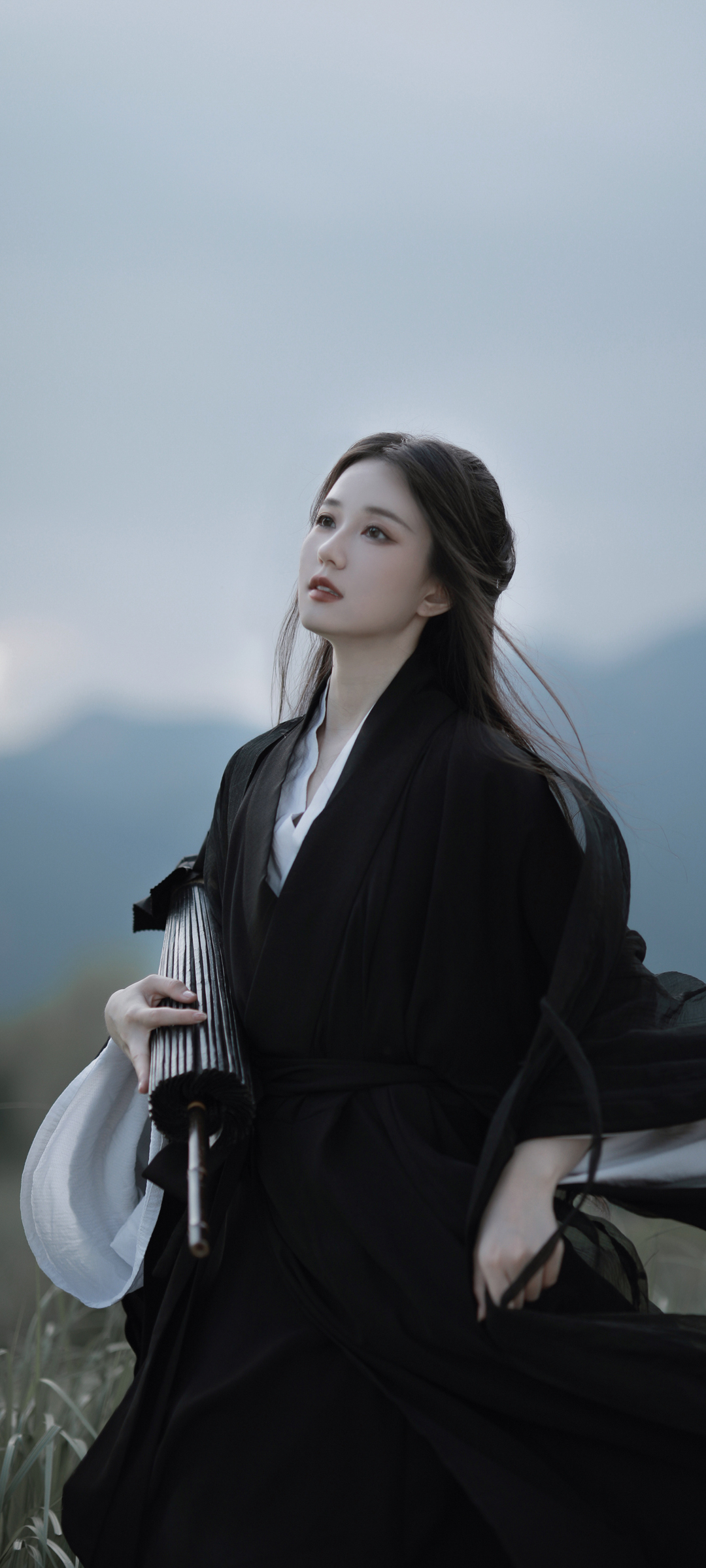 黑色居士服美女高清手机壁纸