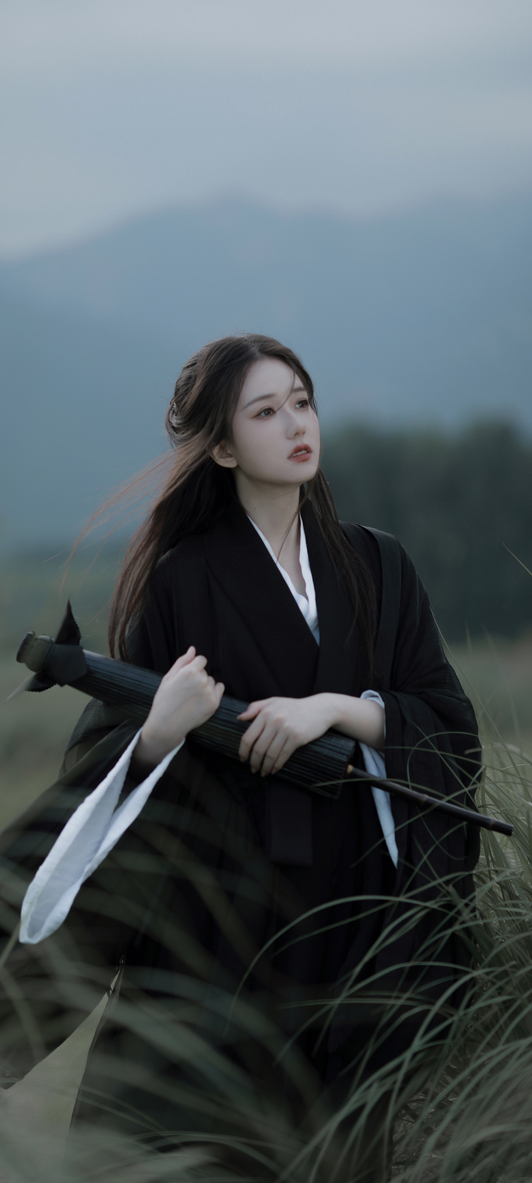 蓝色裙子美女张嘉倪全面屏手机壁纸