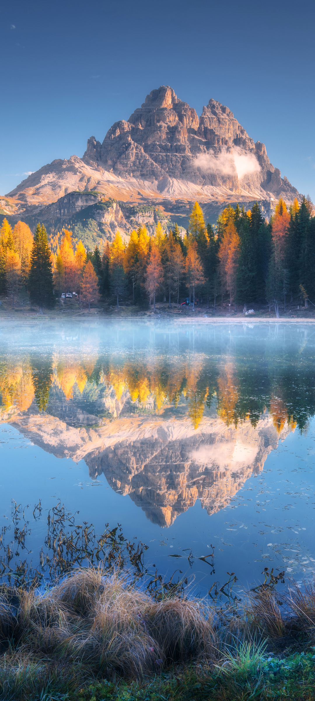 秋天高山湖水倒影树林草自然风景手机高清壁纸免费下载