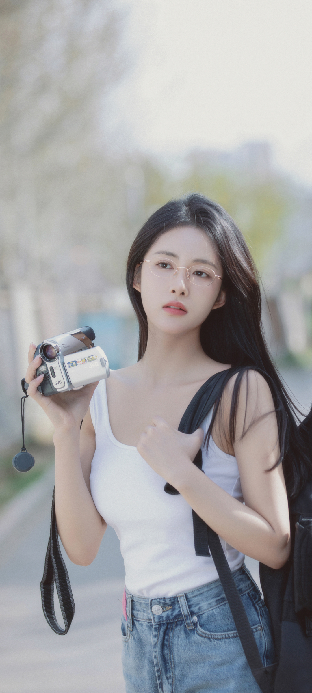 美丽林晚儿美女相机风手机壁纸免费下载
