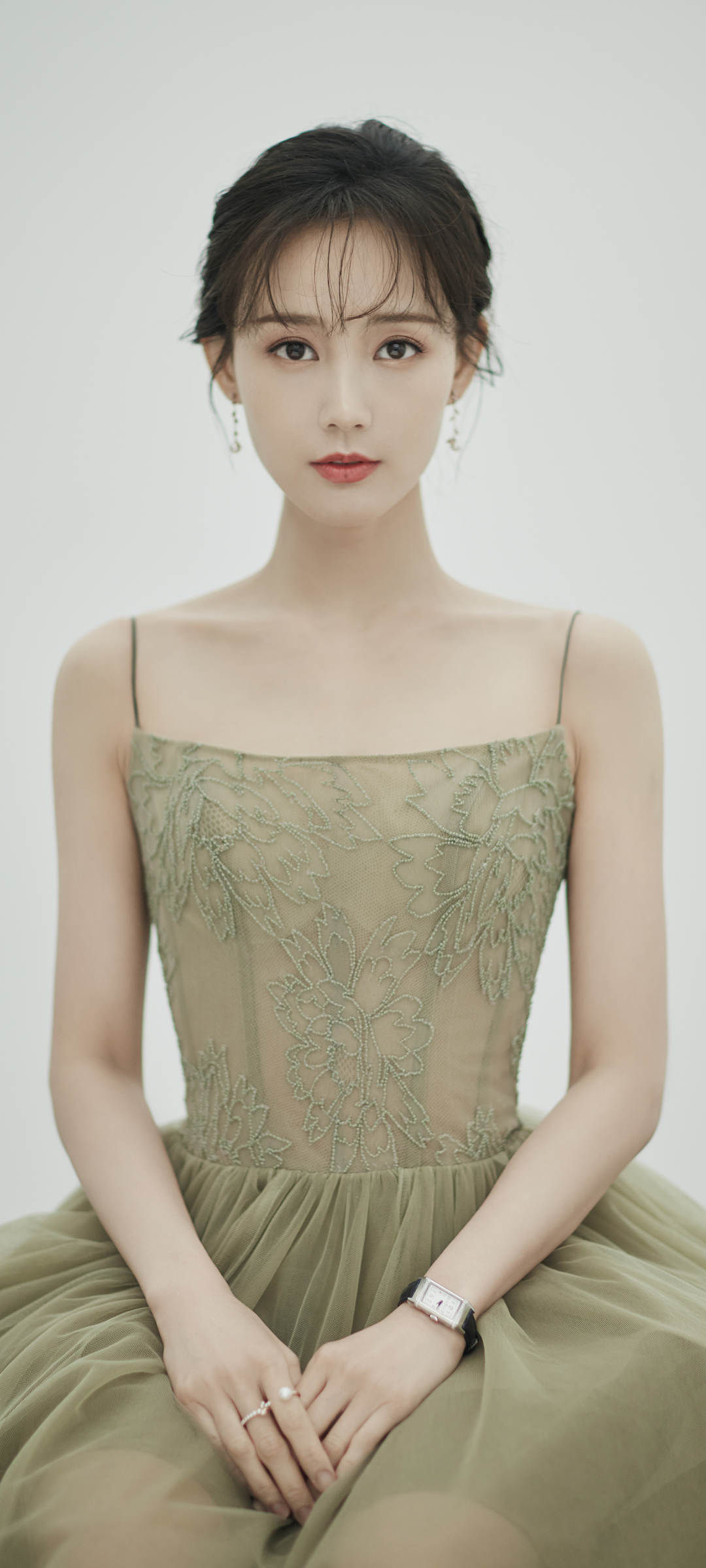 李一桐 绿色裙子 高清 全面屏 手机壁纸图片