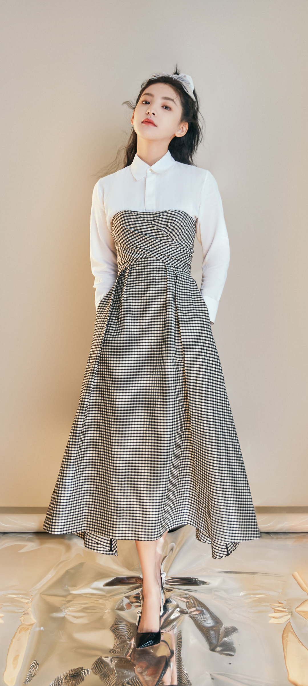 迪丽热巴白色礼服裙高清全面屏手机壁纸免费下载