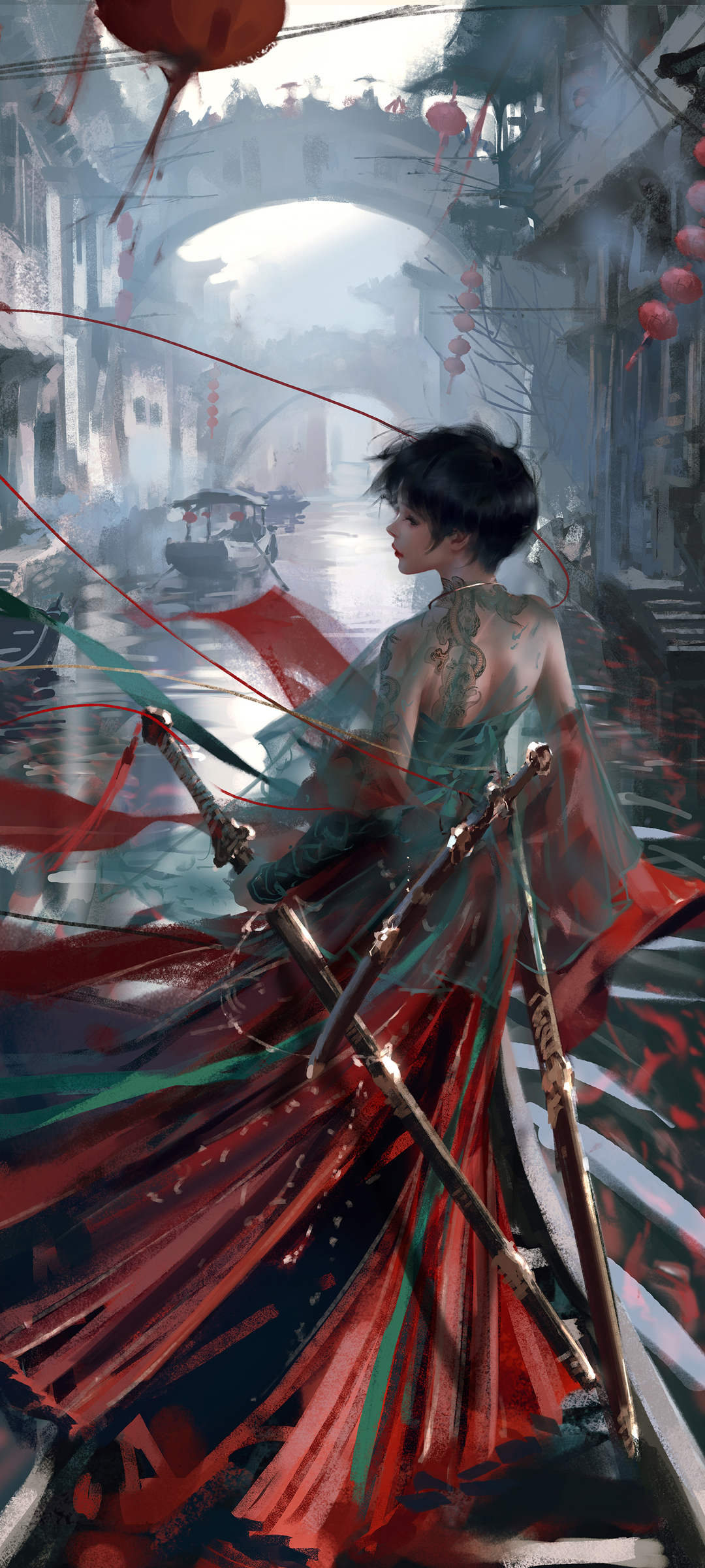 短发美女纹身鬼刀厚涂画全屏高清手机壁纸免费下载