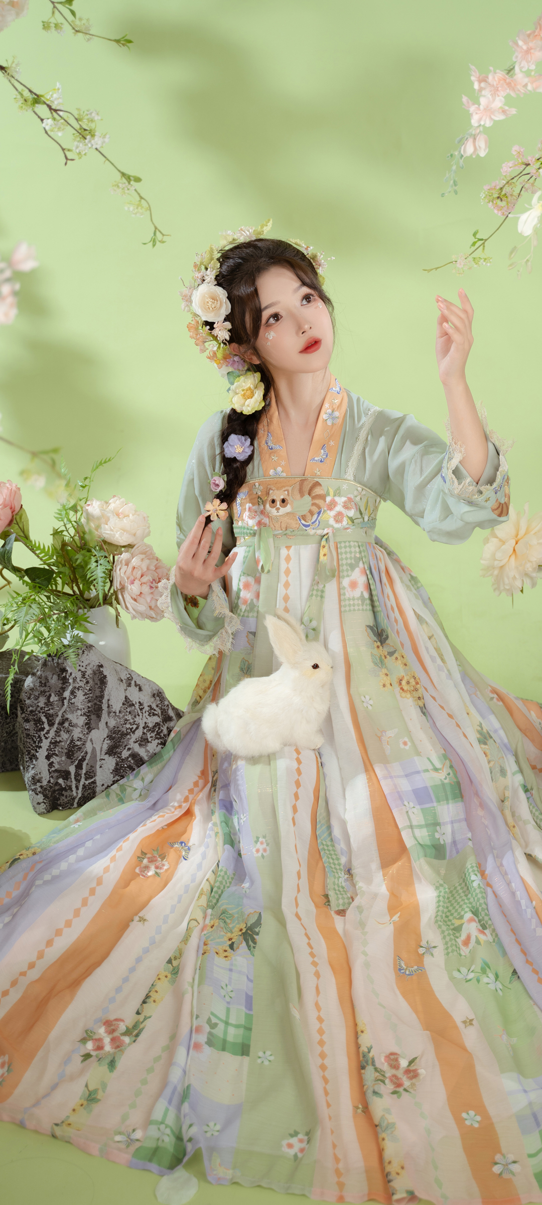 绿色小清新可爱汉服美女免费手机壁纸下载