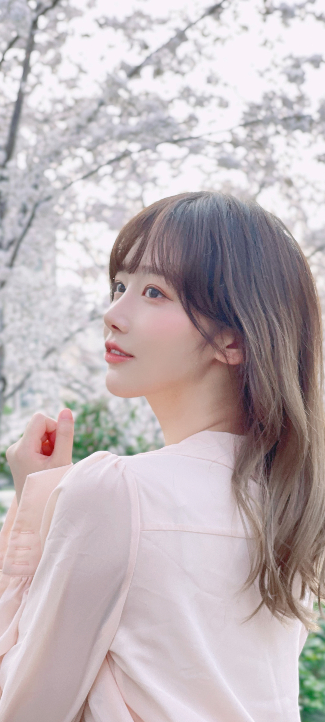 美女回头侧脸唯美樱花手机桌面壁纸免费下载