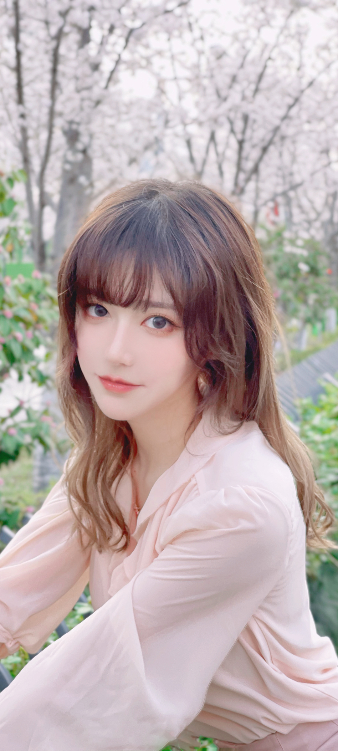 网红 美女 粉色衣服 全屏 手机 壁纸