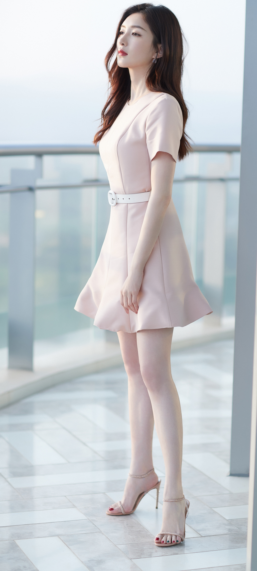 粉色裙子李沁侧脸高清美女手机壁纸免费下载