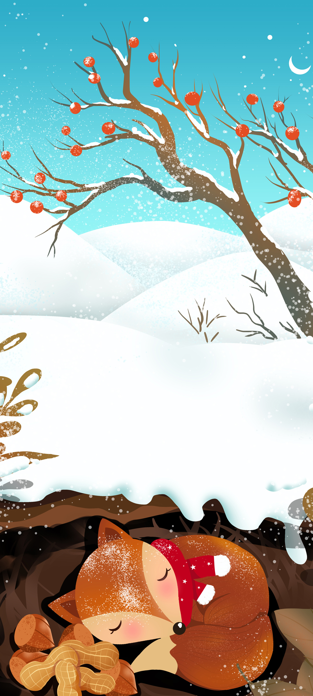 小雪主题可爱狐狸坚果动物免费手机桌面壁纸下载