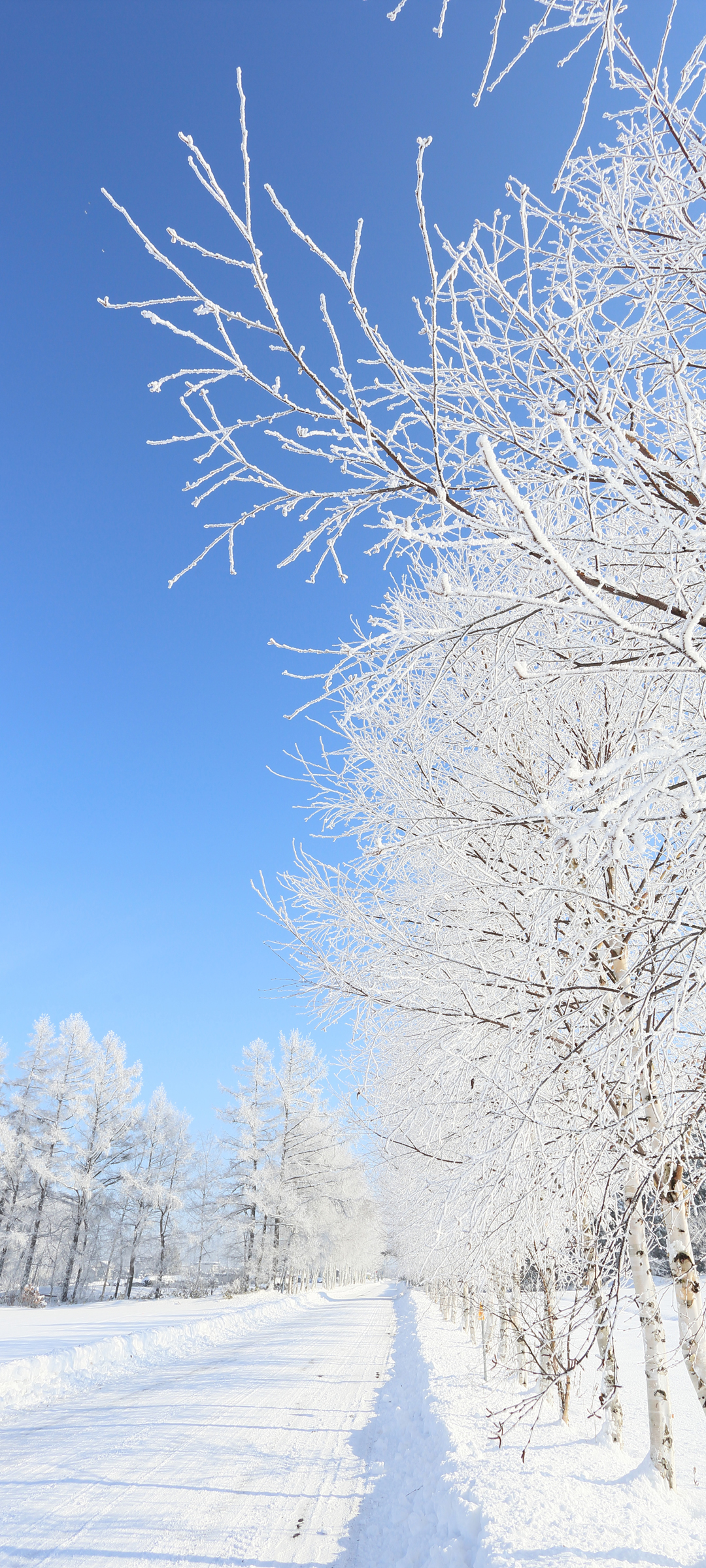 冬日雪景树与路绝美风景手机壁纸免费下载