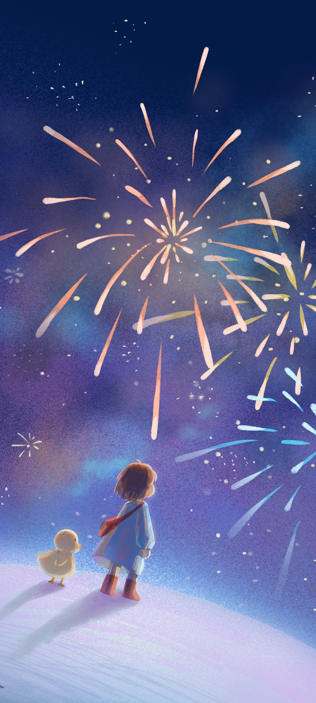 新年 烟花 小女孩 小鸭子 可爱 手机 壁纸 图片