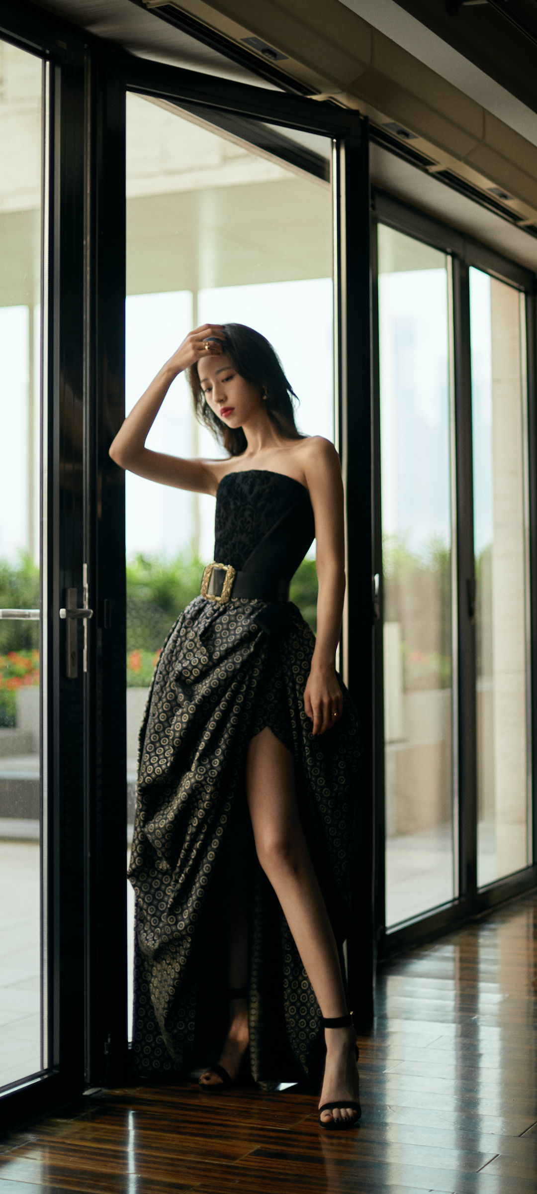 周雨彤黑色礼服裙子美腿美女手机桌面壁纸免费下载