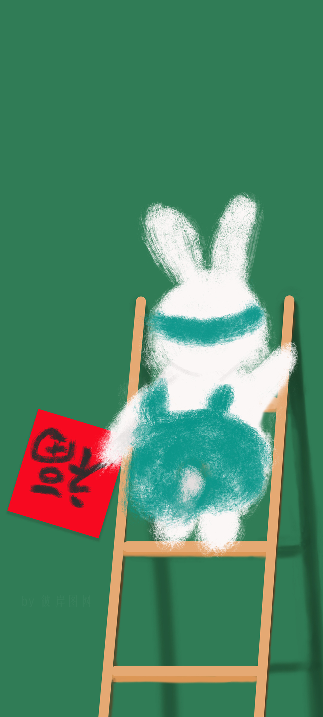 新年可爱兔子 灯笼 简单背景 手机桌面