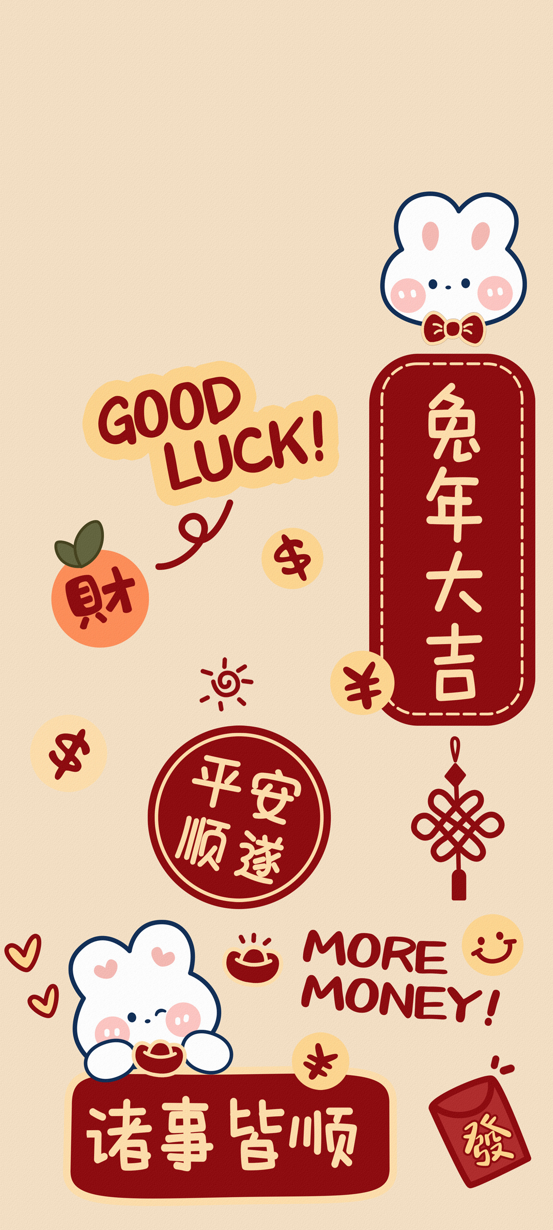 平安喜乐 可爱兔子 2023 新年 春节 手机 壁纸