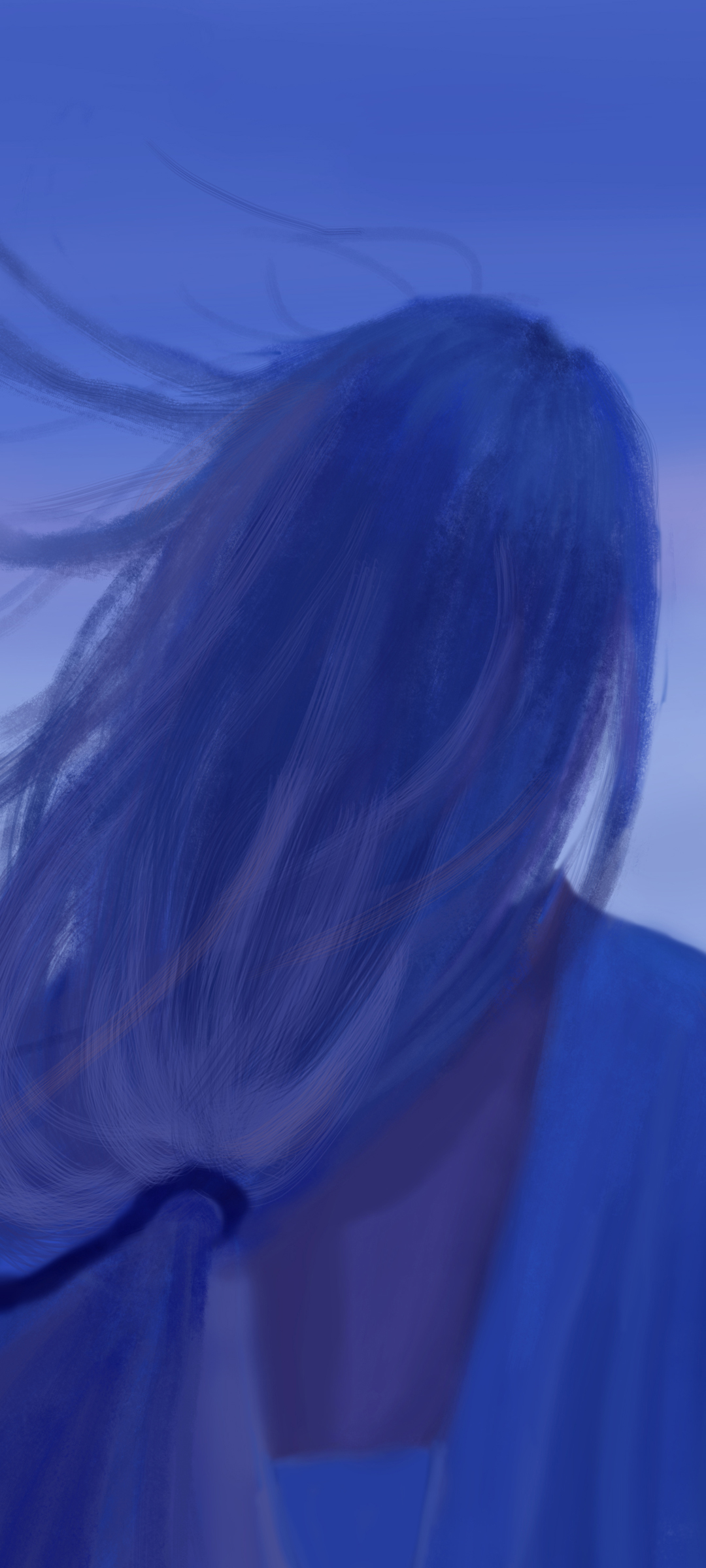 唯美长头发背影动漫厚涂风格手机壁纸免费下载