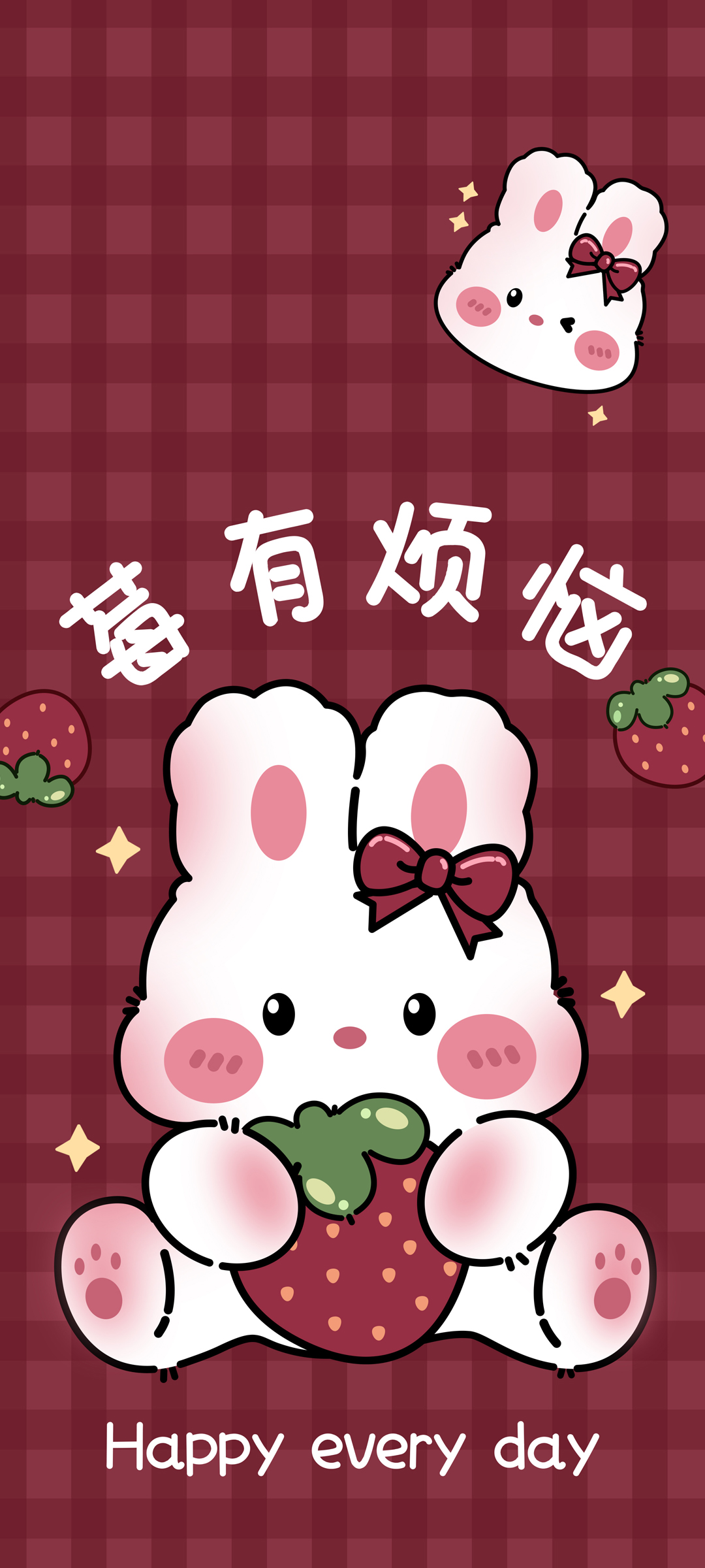 2023 莓有烦恼 新年快乐 可爱 兔年 手机 壁纸