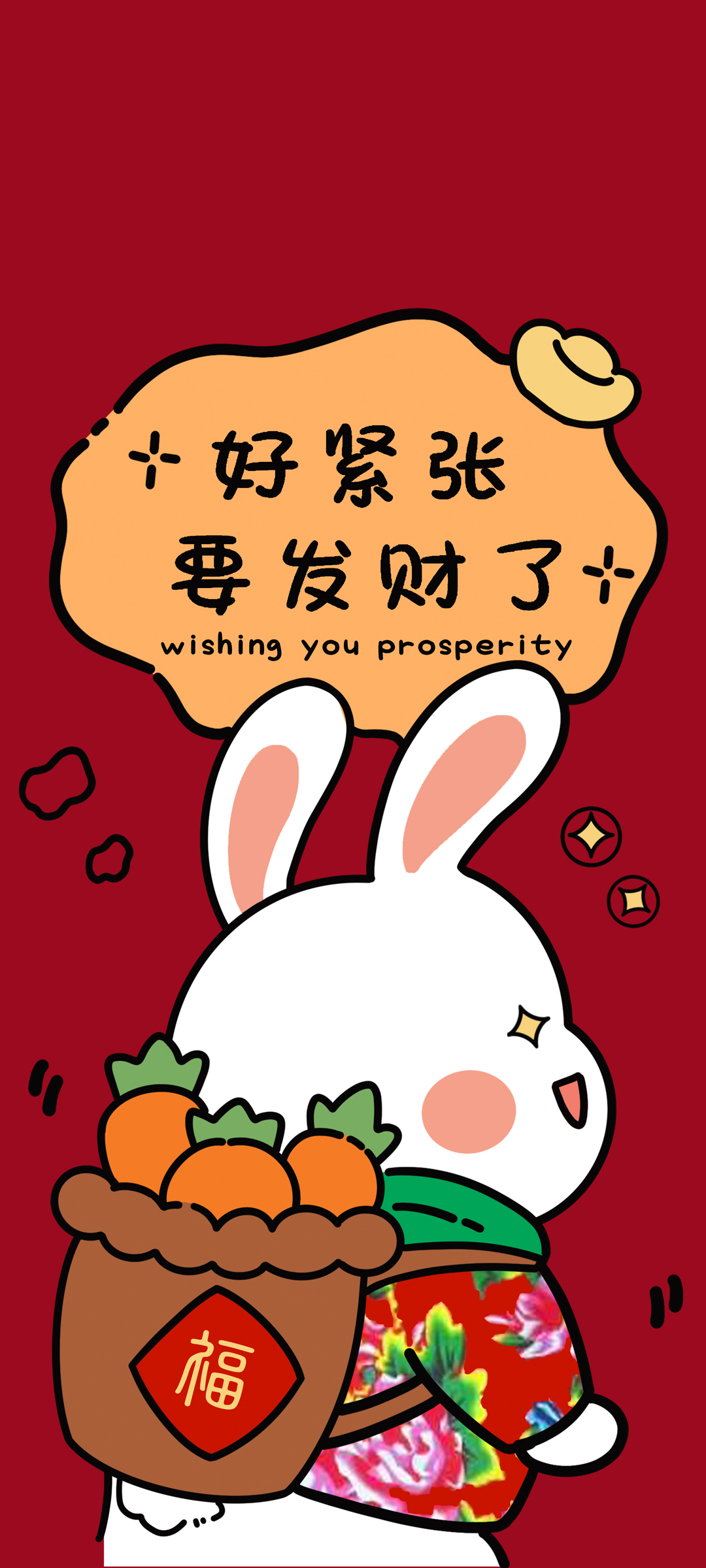 春节 红色 喜庆 可爱毛绒兔子 手机 壁纸