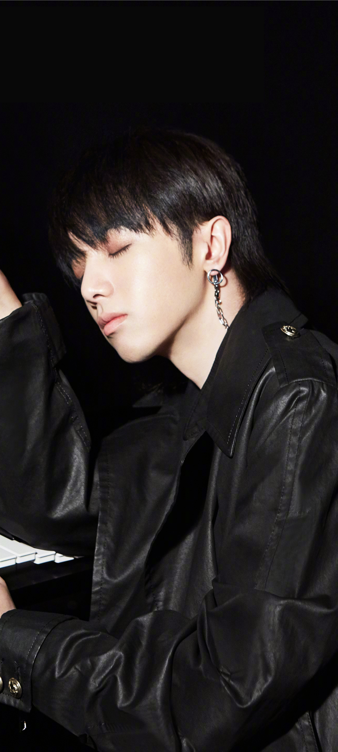 华晨宇闭眼穿黑色皮衣高清帅哥免费手机壁纸下载