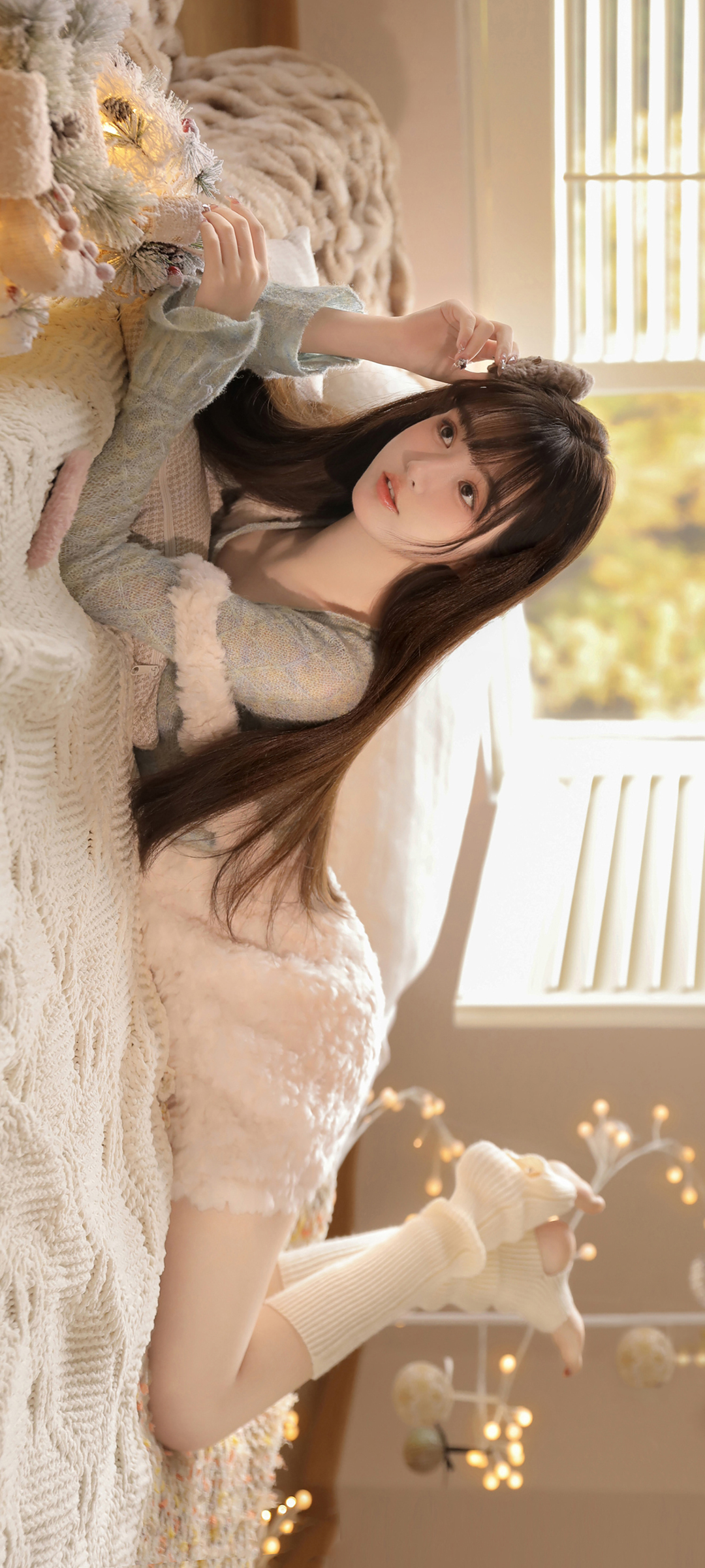 彭十六 红色毛衣背带牛仔裤美女全屏手机壁纸