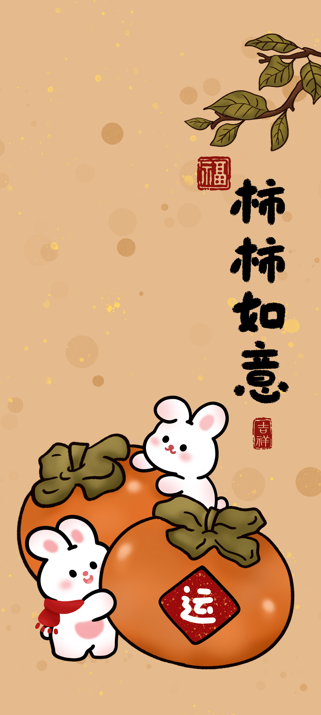 柿柿如意 新年 好运 可爱小白兔 手机 壁纸