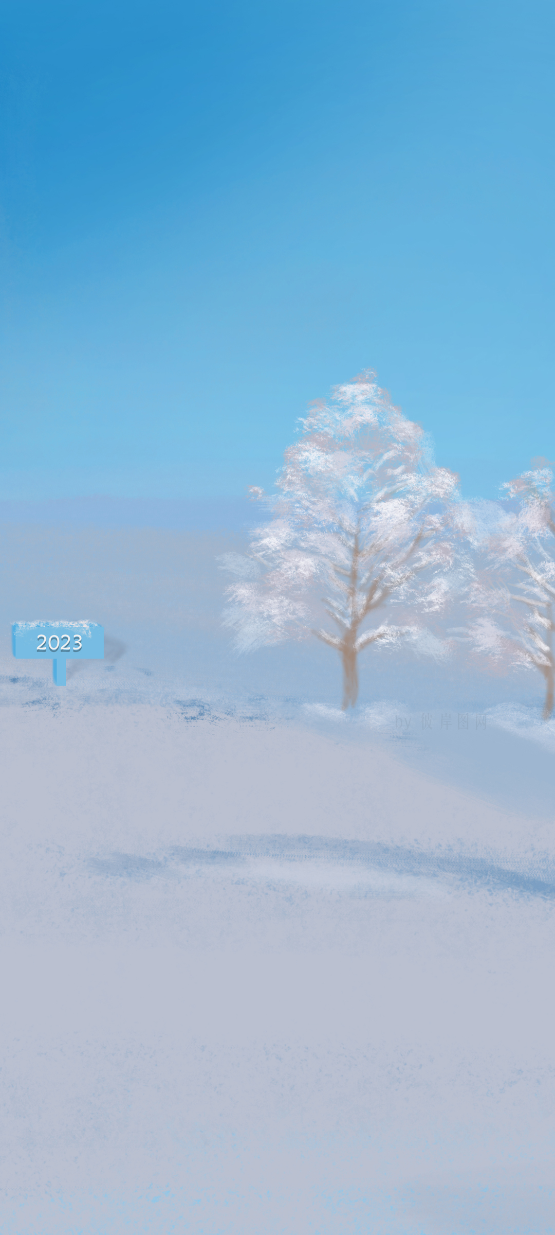 2023新年原创清新冬天雪景树风景手机壁纸免费下载
