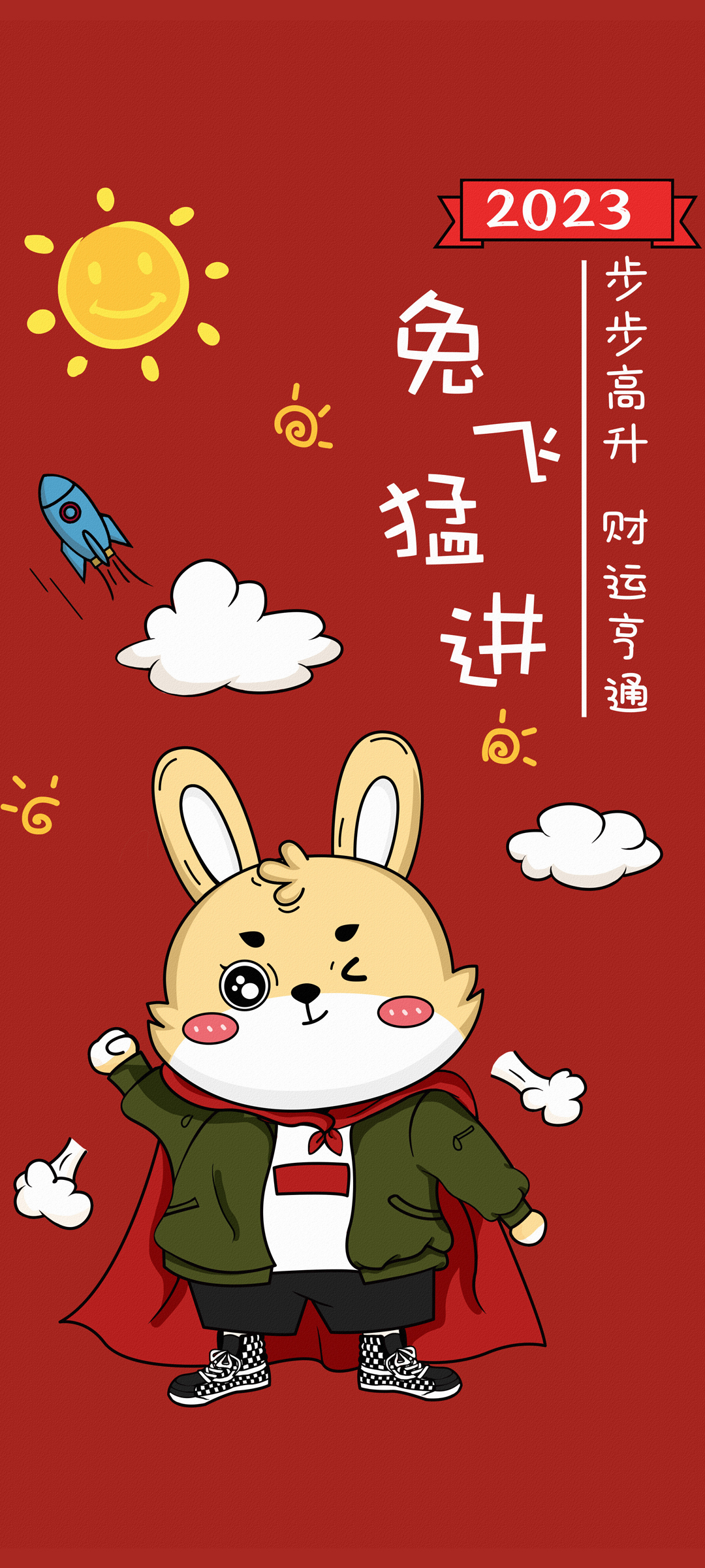 2023兔飞猛进步步高升新年免费手机壁纸下载