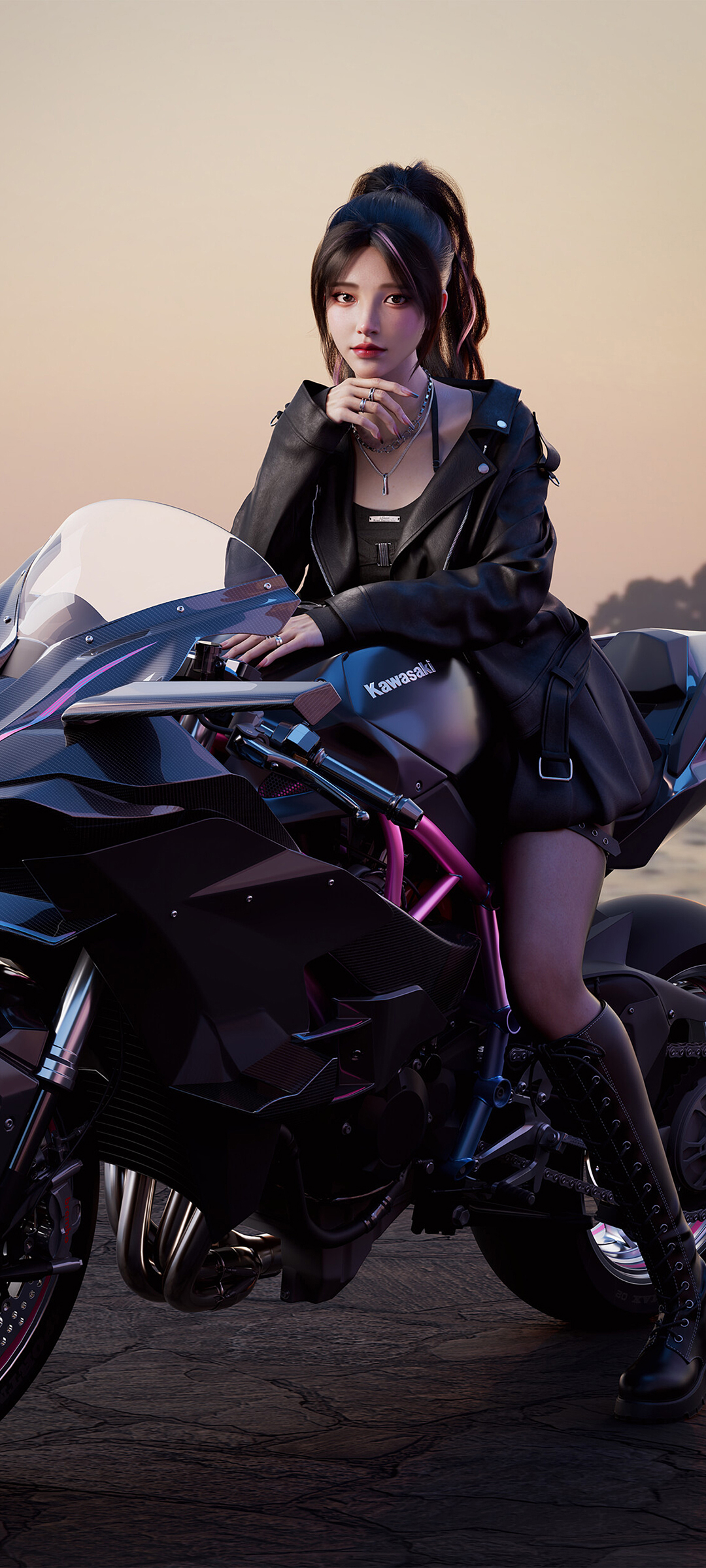 可爱性感帅气高马尾辫美女骑机车摩托车动漫手机壁纸免费下载