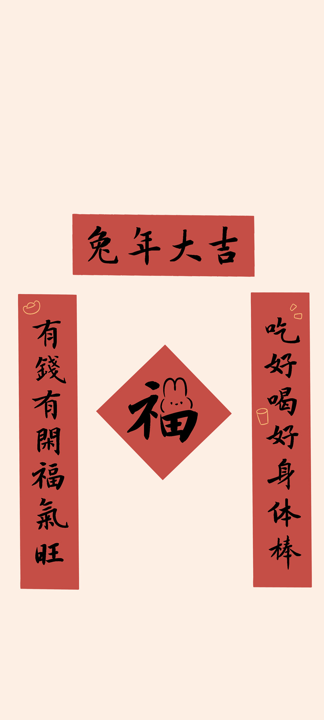 平安喜乐 可爱兔子 2023 新年 春节 手机 壁纸