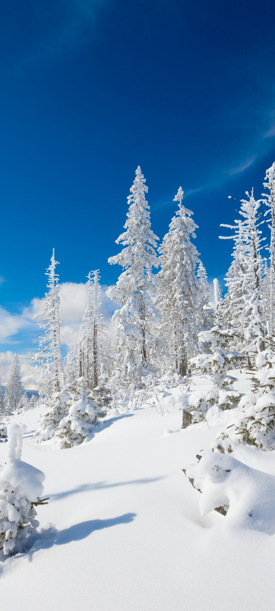 雪景 树 雪地 蓝天 风景 手机 壁纸