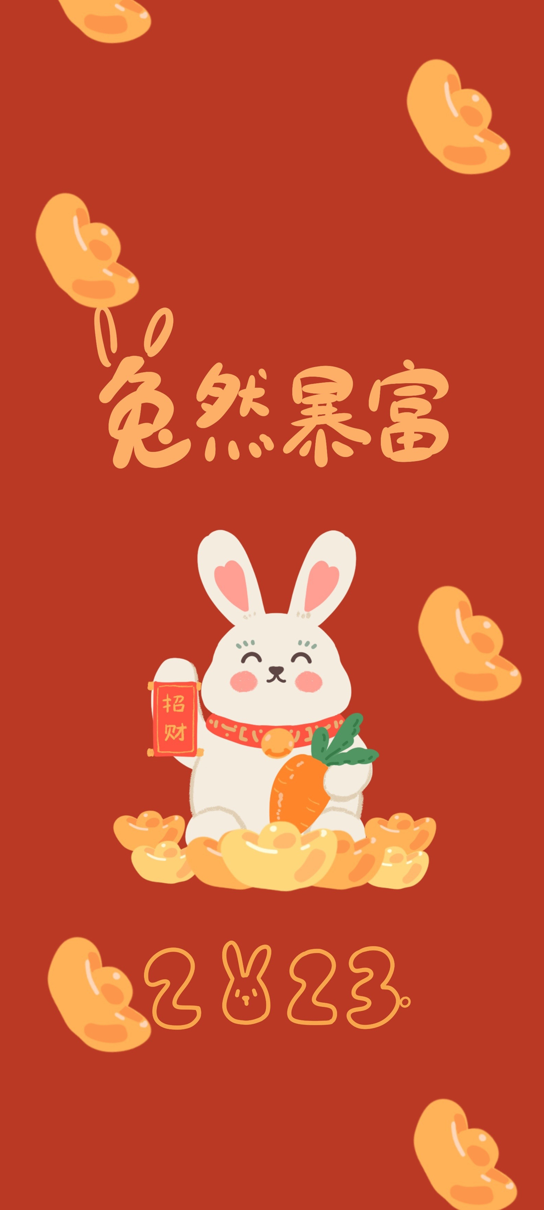 一夜暴富 钱兔无量 2023 新年 高清 手机壁纸