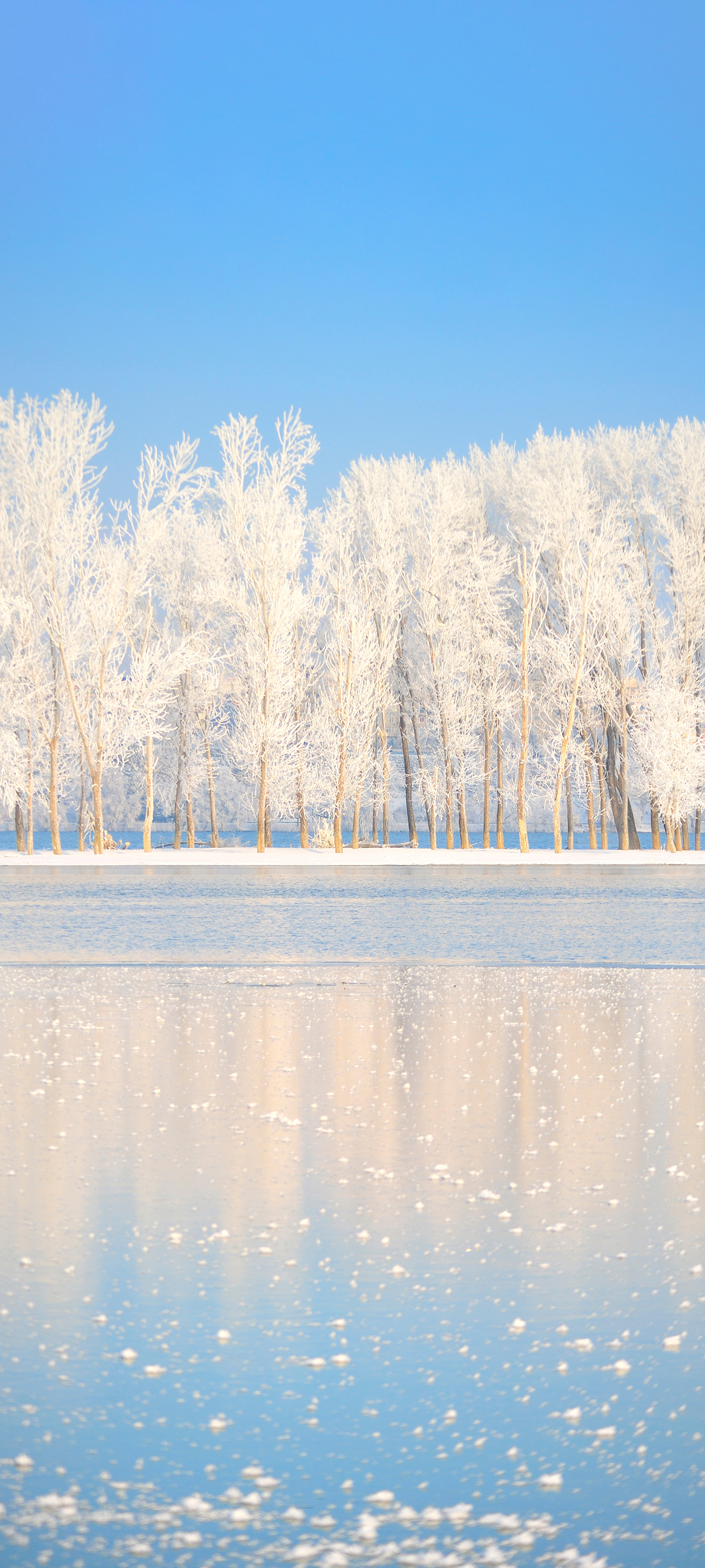 冬天雪覆树映河水风景免费手机壁纸下载