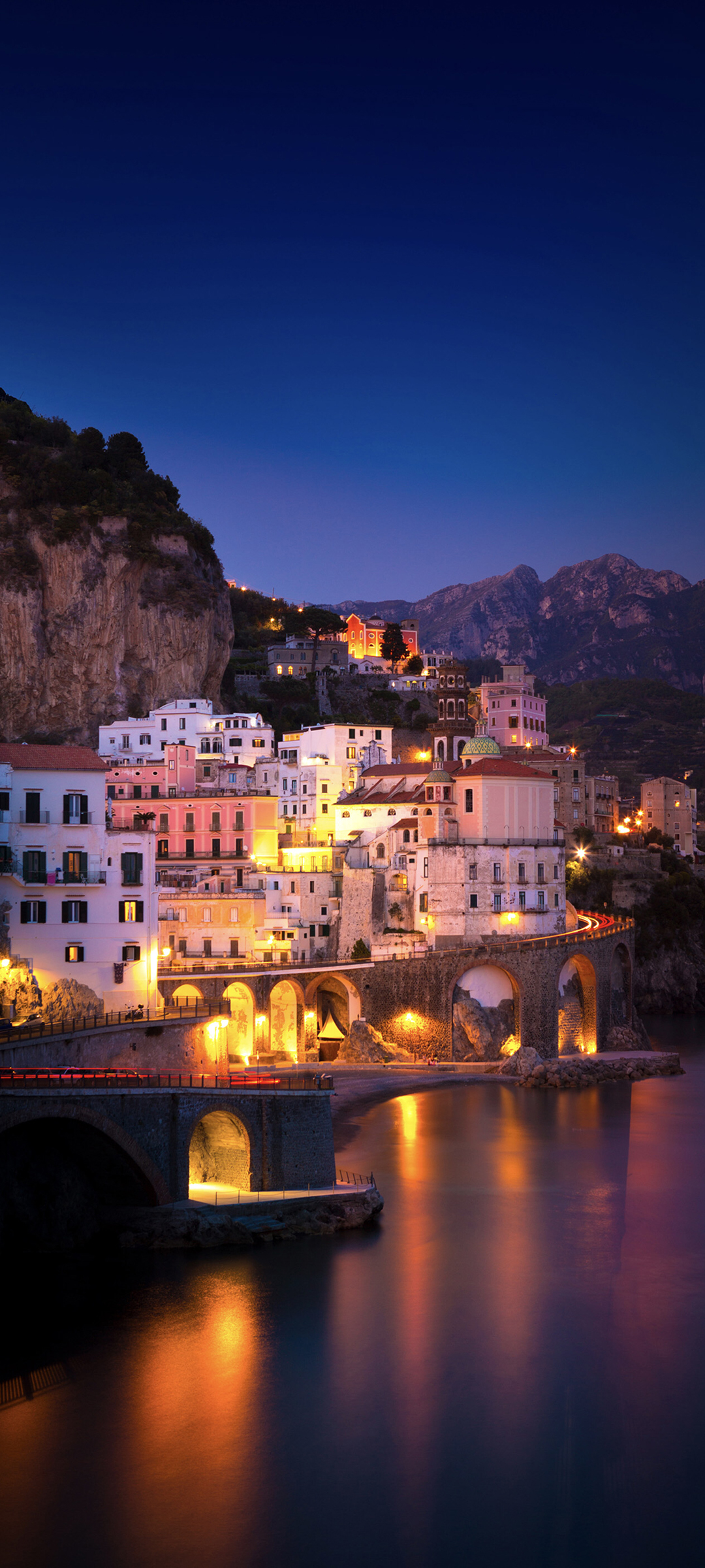 夜晚 海边 房子 灯光 风景 手机壁纸