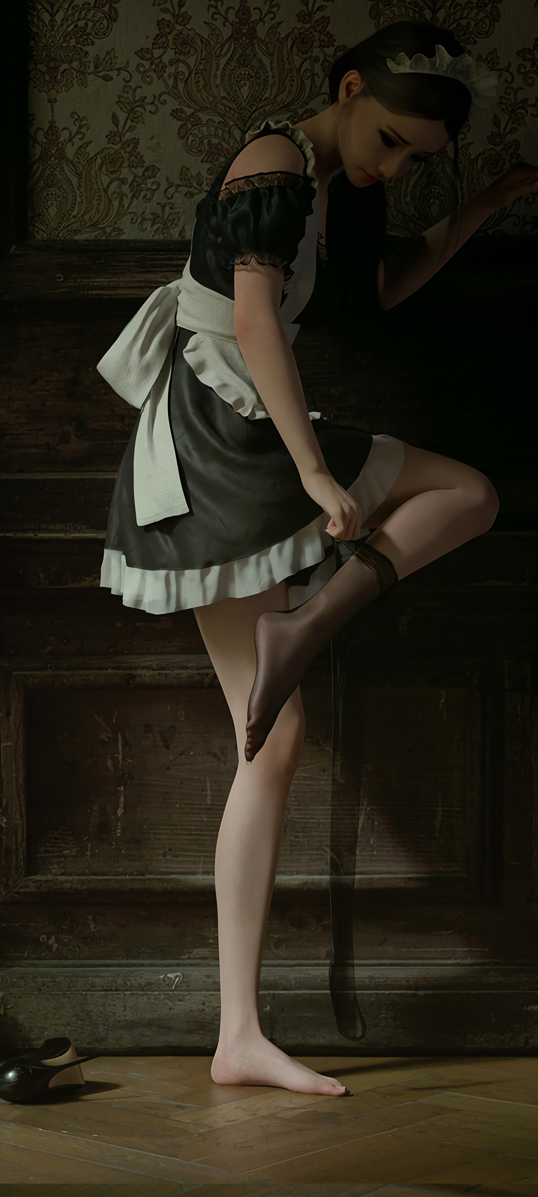 女仆 回家 白色美腿 黑色丝袜 动漫 手机壁纸